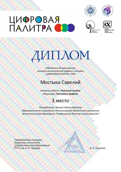 27 марта 2026 года состоялась очная церемония награждения победителей Всероссийского конкурса компьютерной графики и дизайна «Цифровая палитра - 2026» среди школьников.